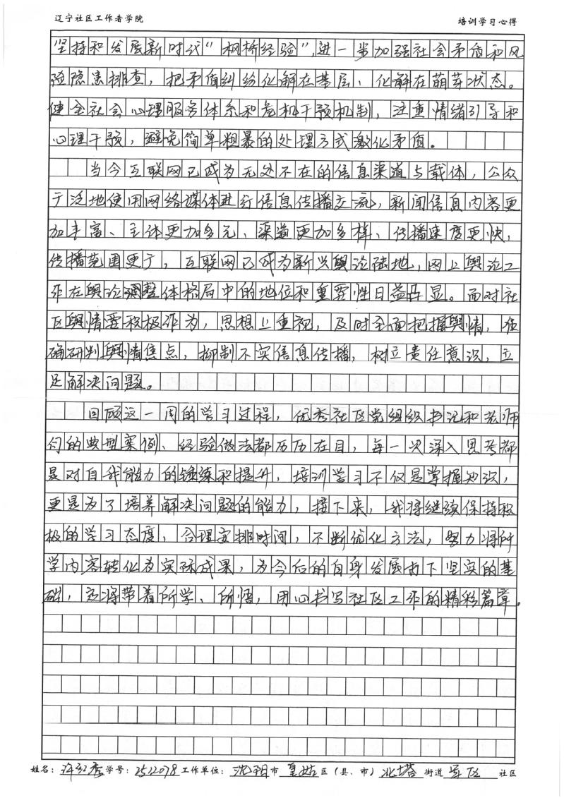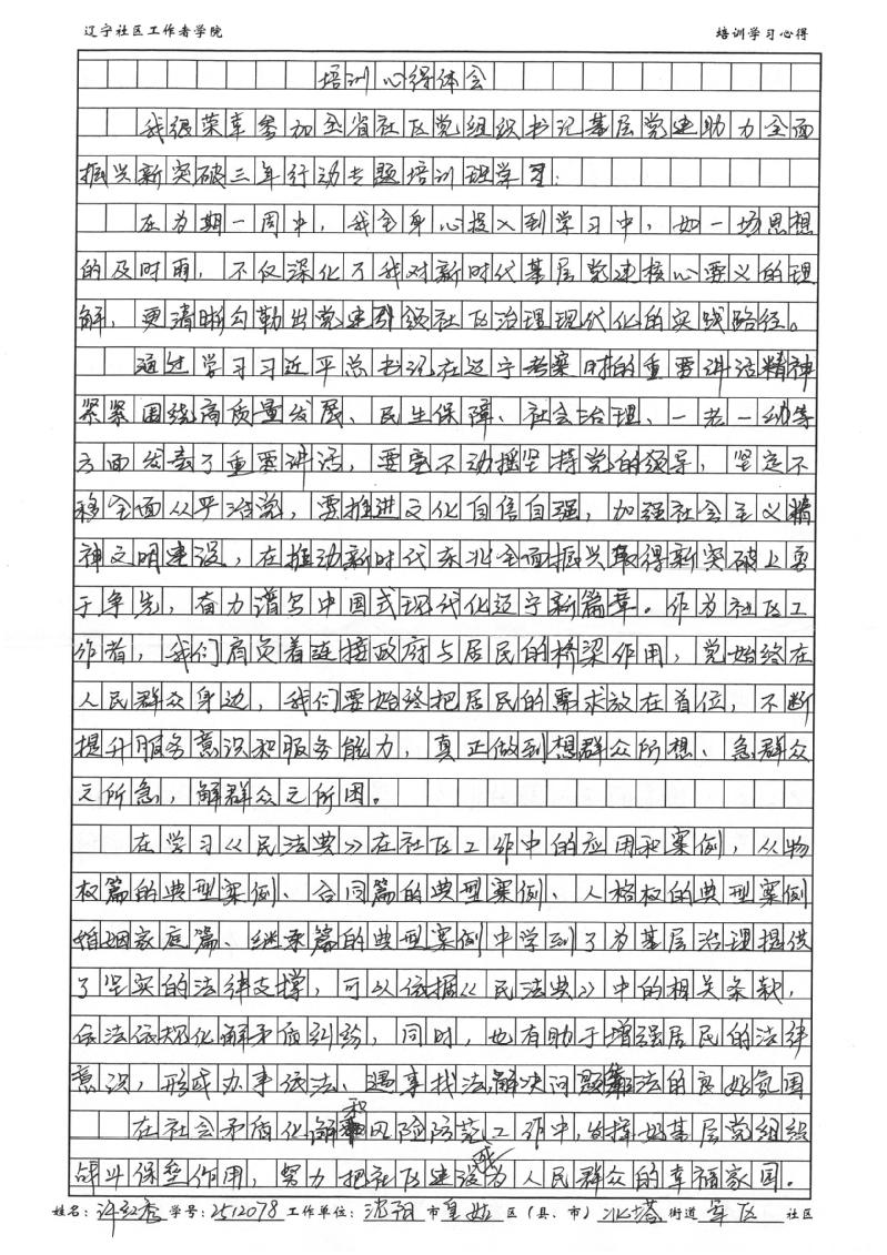 沈阳市皇姑区北塔街道军区社区党委书记、居委会主任许红秀学习心得