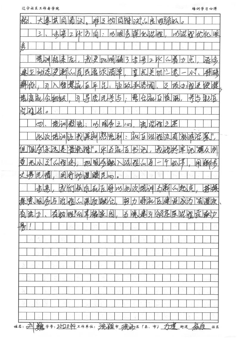 沈阳市沈河区万莲街道松泉社区党委书记、居委会主任刘巍学习心得