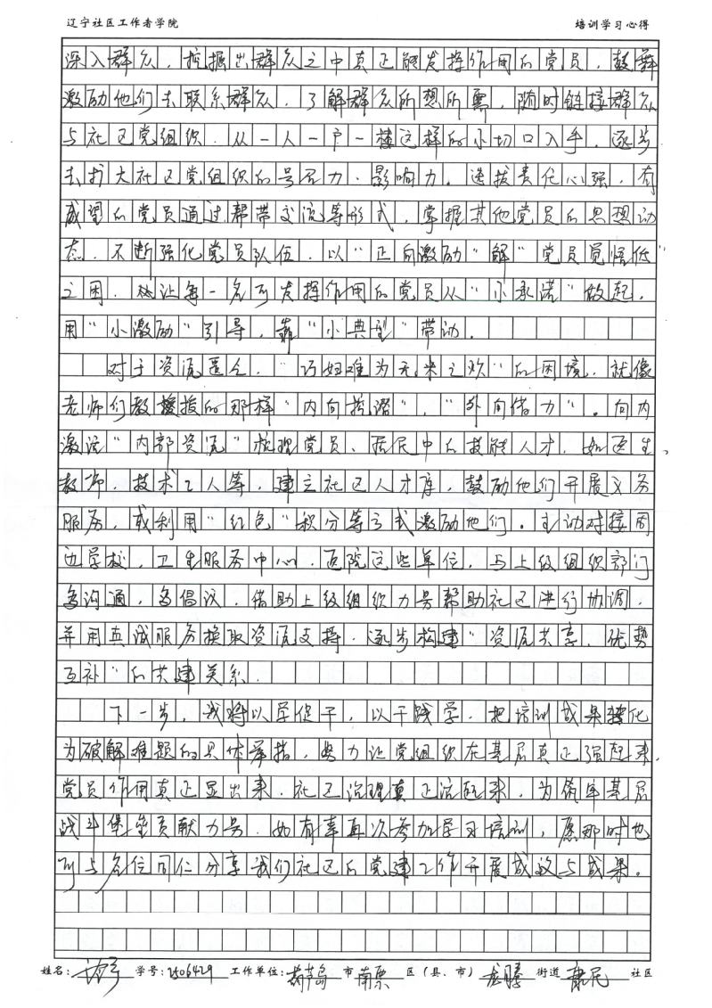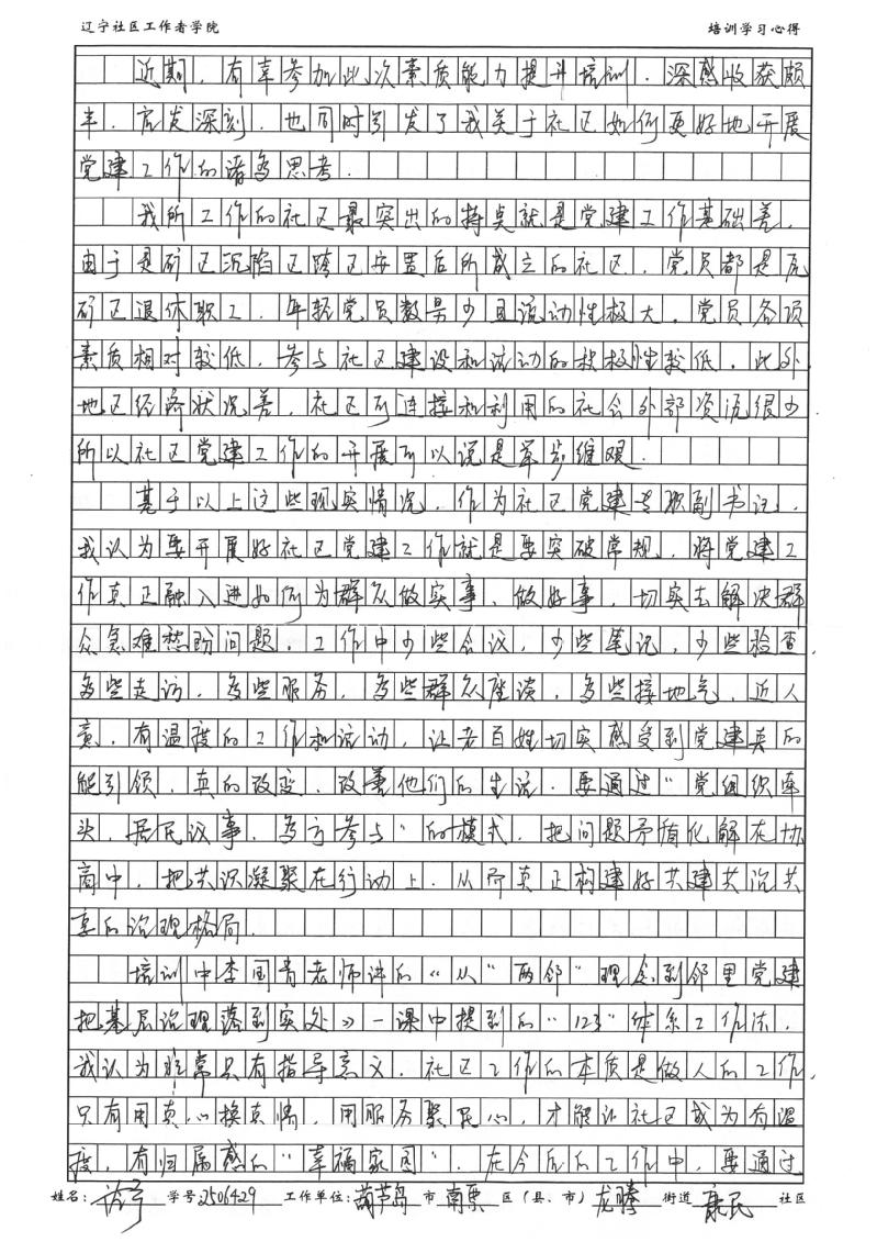 葫芦岛市南票区龙腾街道康民社区党委副书记冷宁学习心得