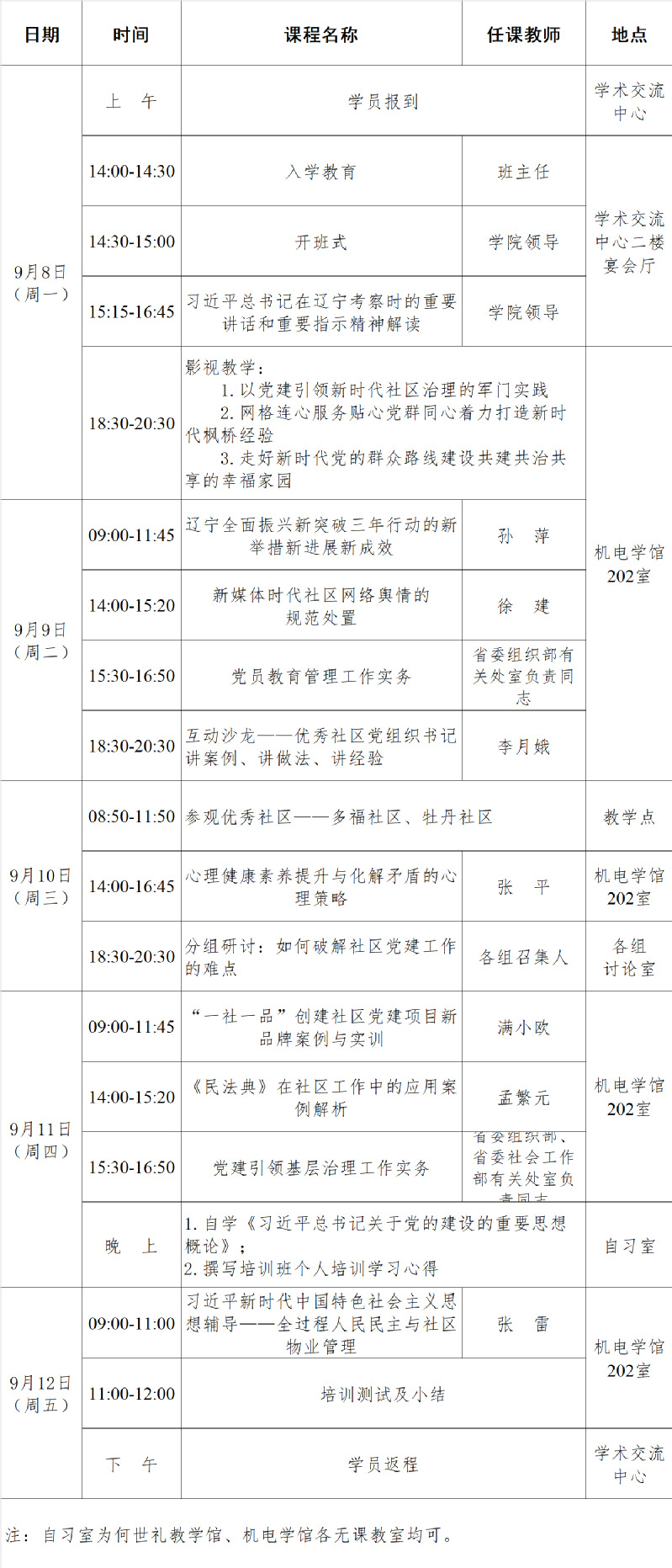 2025年第十三期全省社区党组织书记基层党建助力全面振兴新突破三年行动专题培训班(总第169期)课程安排
