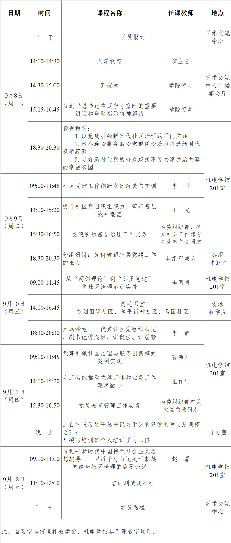 2025年第七期全省社区党组织副书记素质能力提升专题培训班(总第109期)课程安排