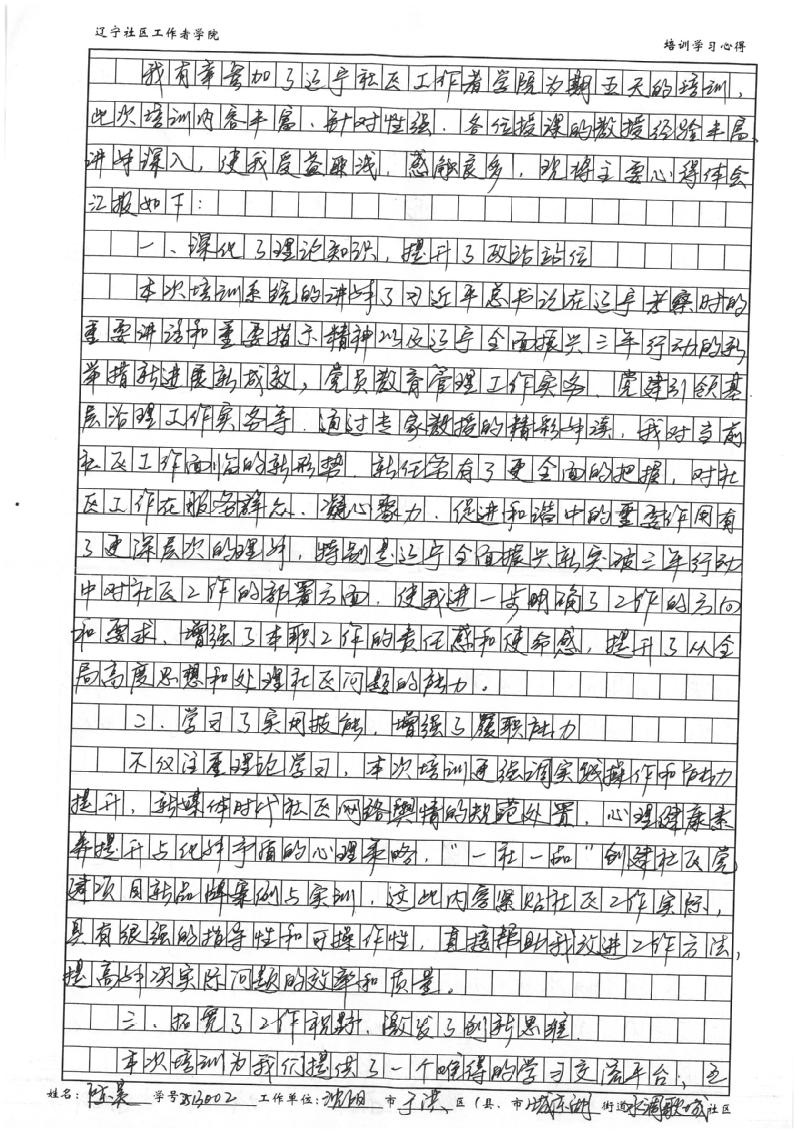 沈阳市于洪区城东湖街道水调歌城社区党委书记、居委会主任陈昊学习心得