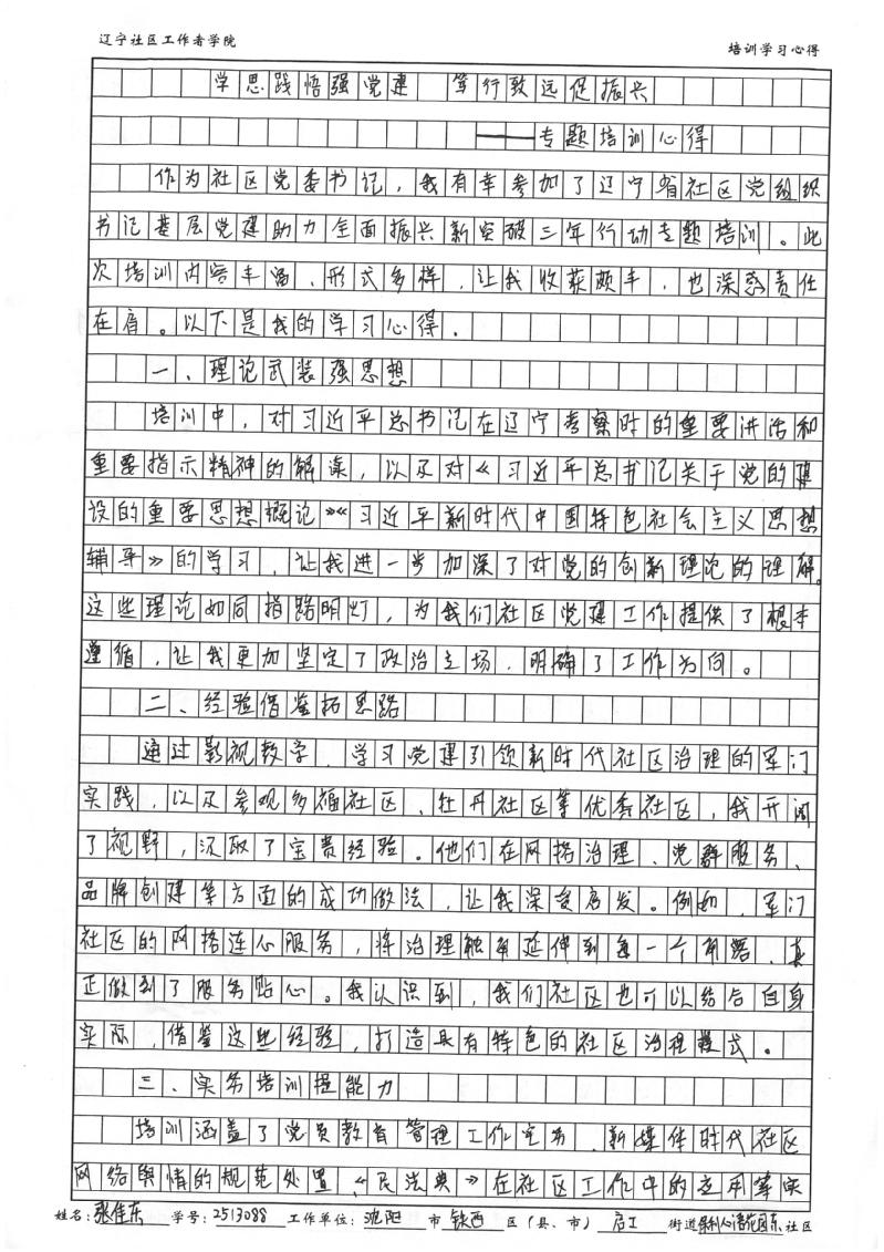 沈阳市铁西区启工街道保利心语花园东社区党委书记、居委会主任张佳东学习心得