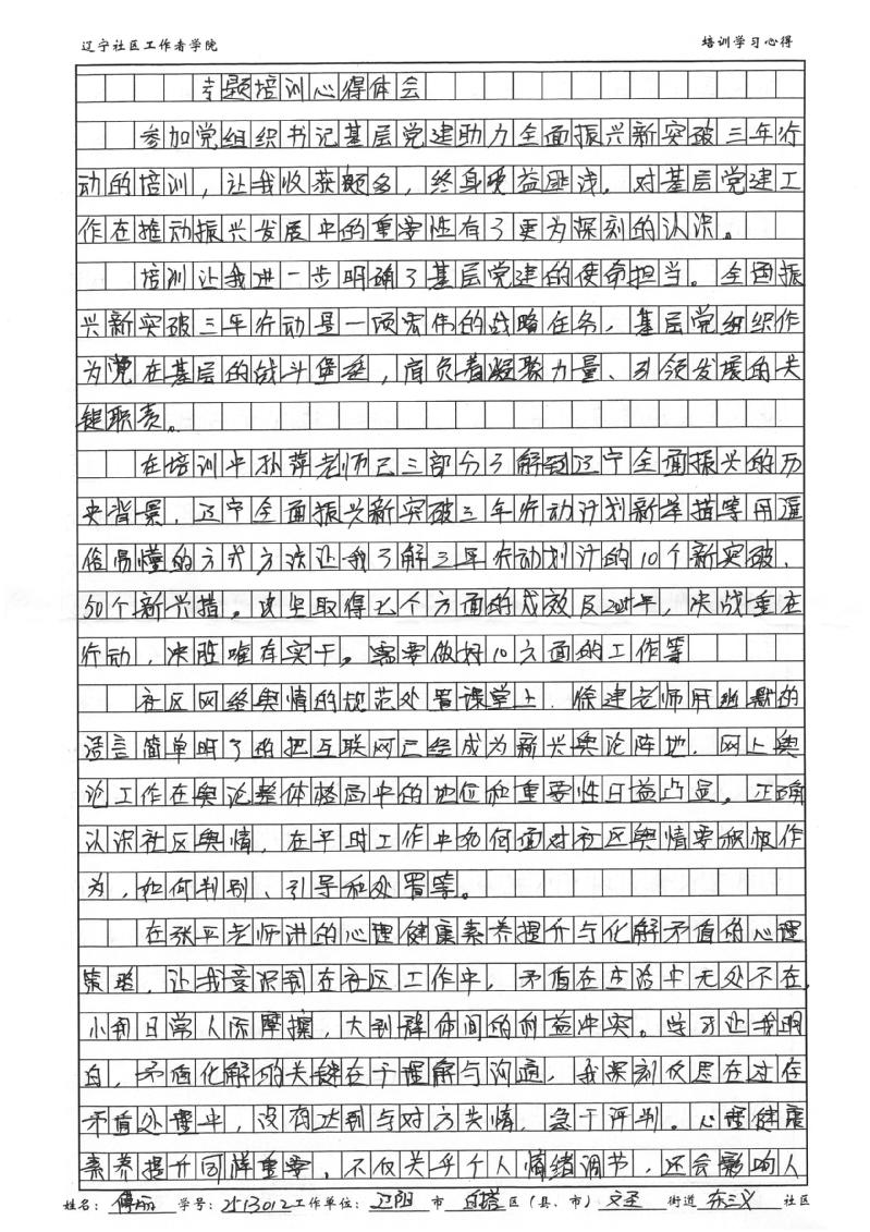 辽阳市白塔区文圣街道东三义社区党委书记、居委会主任傅丽学习心得