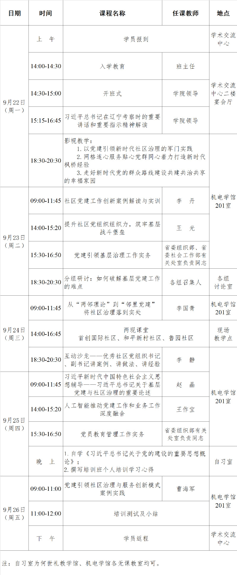 2025年第八期全省社区党组织副书记素质能力提升专题培训班(总第110期)课程安排