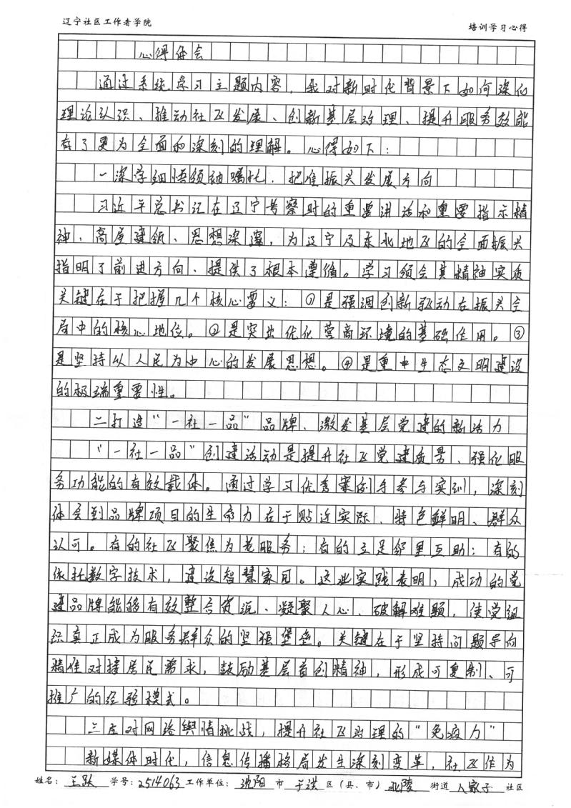 沈阳市于洪区北陵街道八家子社区党委书记、居委会主任王跃学习心得
