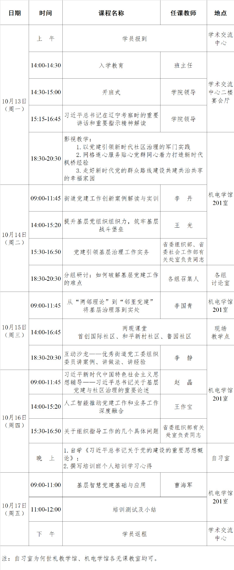 2025年第一期全省街道党工委组织委员基层党建工作实务专题培训班(总第16期)课程安排