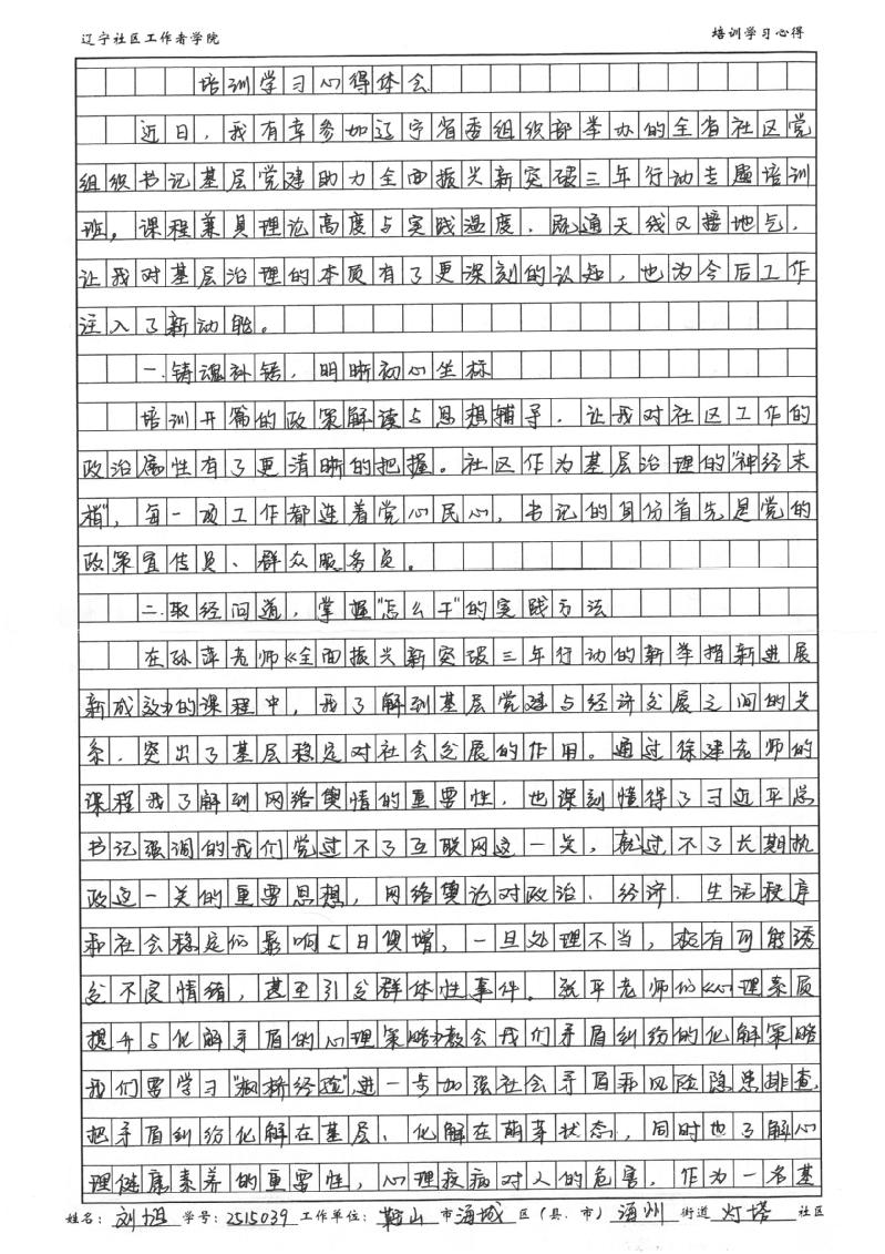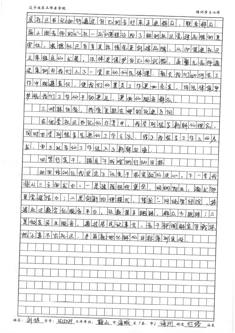 鞍山市海城市海州街道灯塔社区党委书记刘旭学习心得