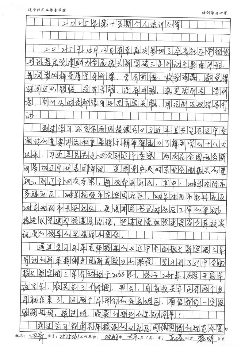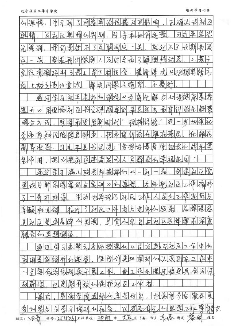 沈阳市大东区东塔街道黎明社区党委书记、居委会主任田青学习心得