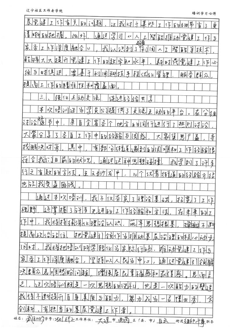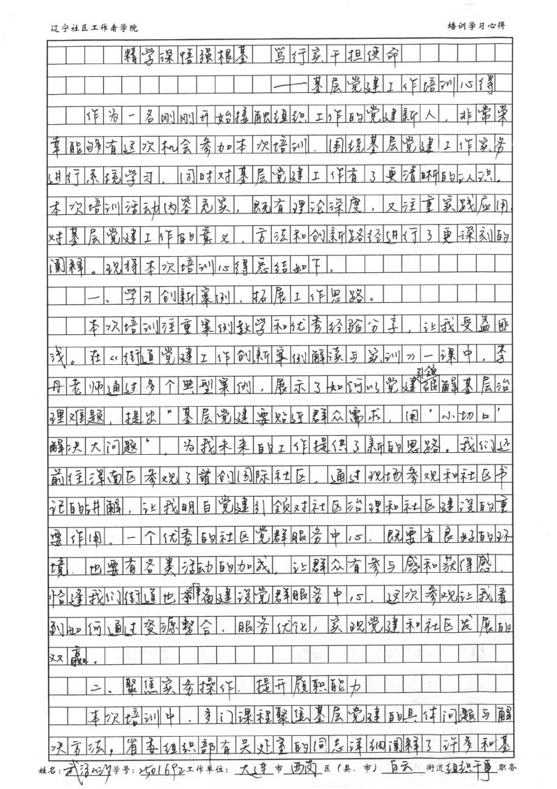 大连市西岗区白云街道党工委组织干事武泓汐学习心得