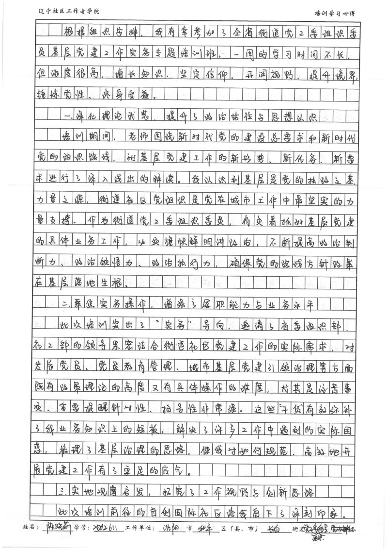 沈阳市和平区长白街道党工委组织委员陈晓莉学习心得