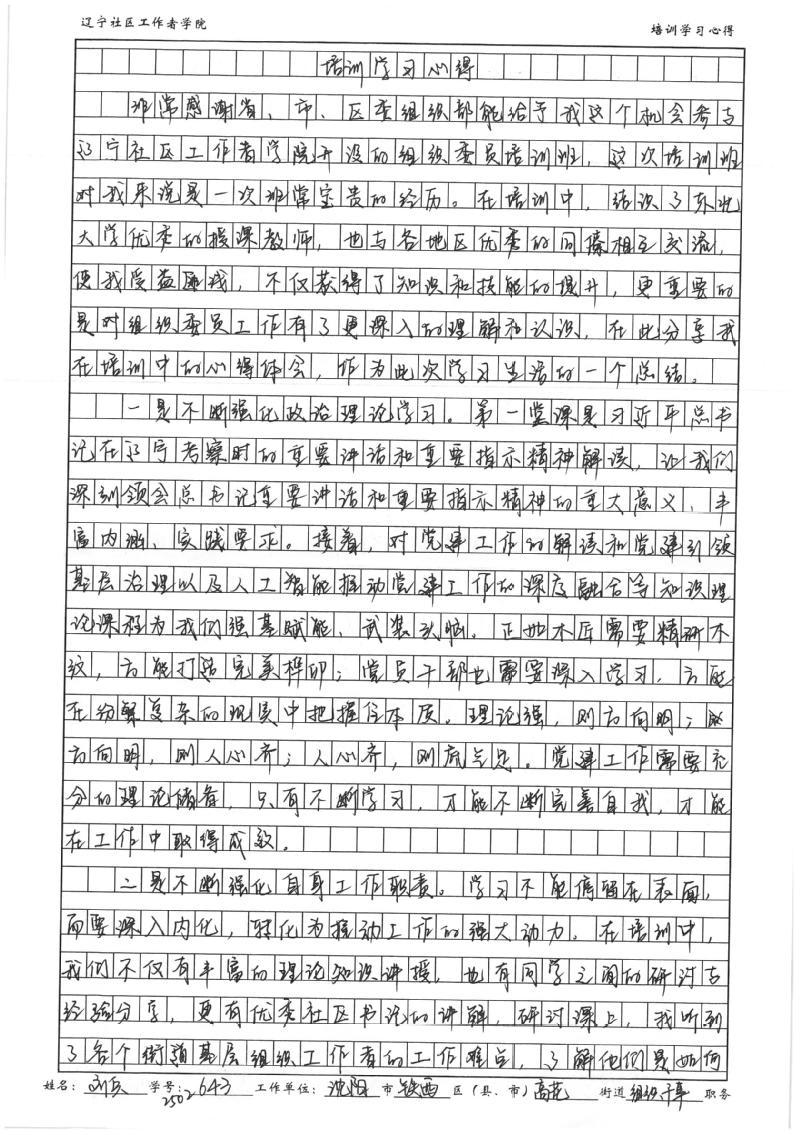 沈阳市铁西区高花街道党工委组织干事刘兵学习心得