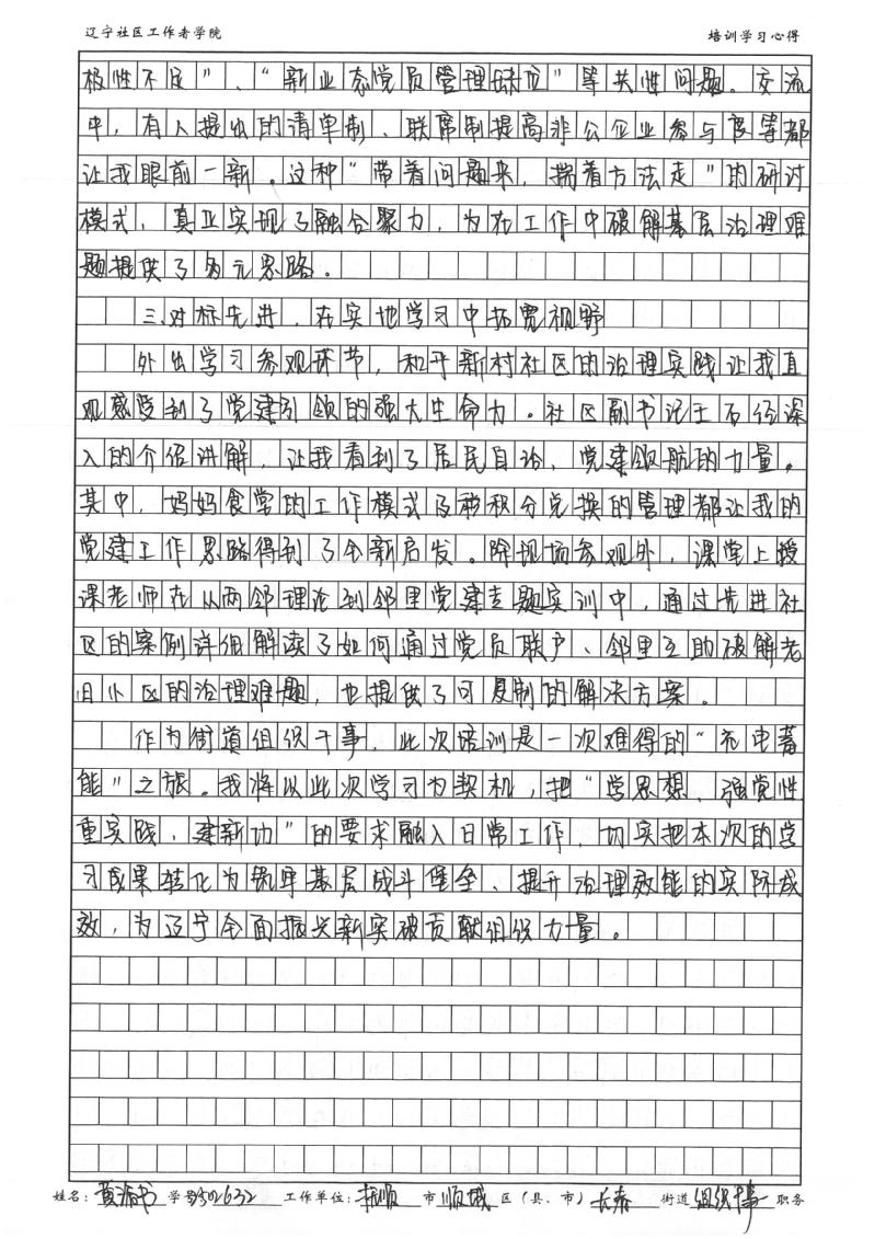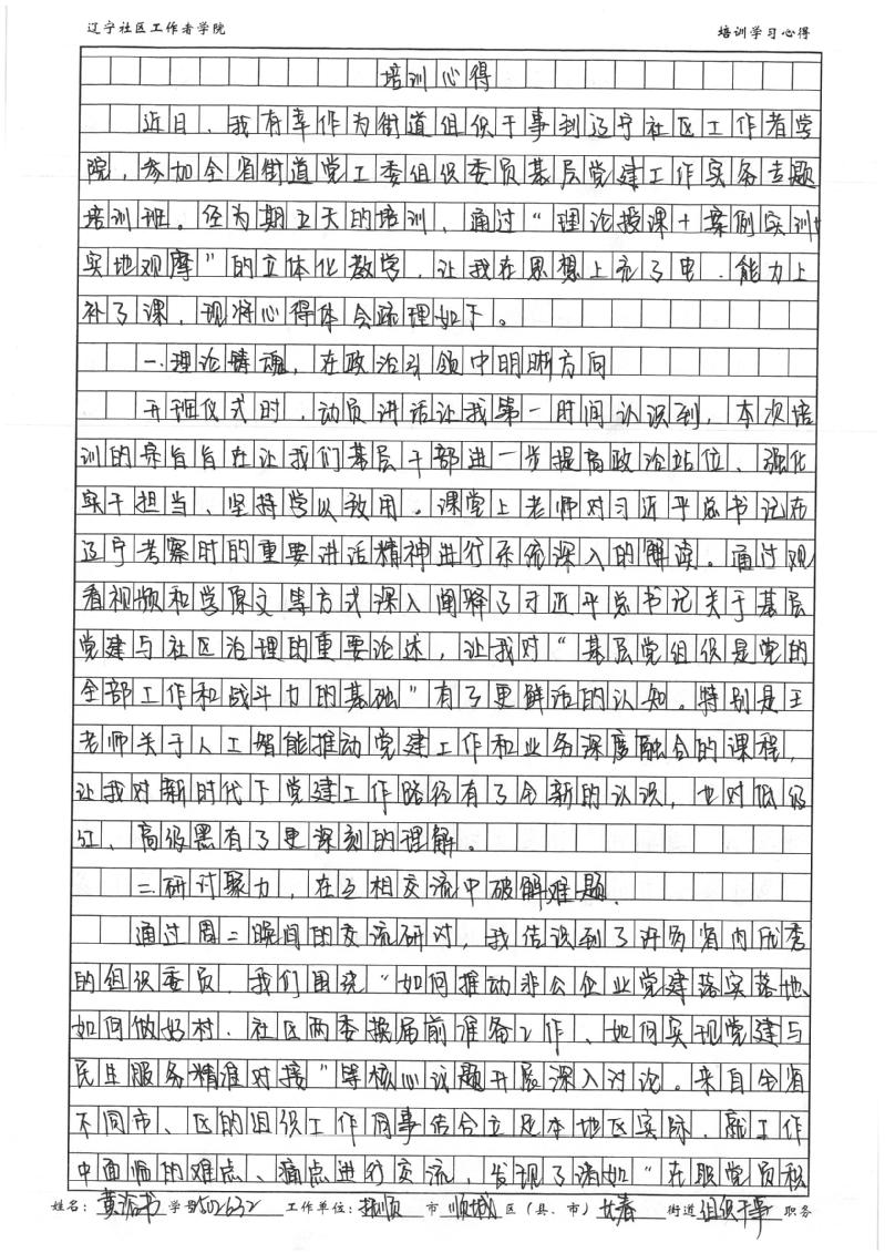 抚顺市顺城区长春街道党工委组织干事黄浴书学习心得