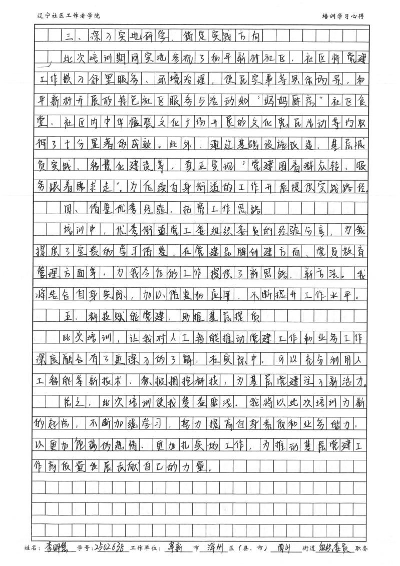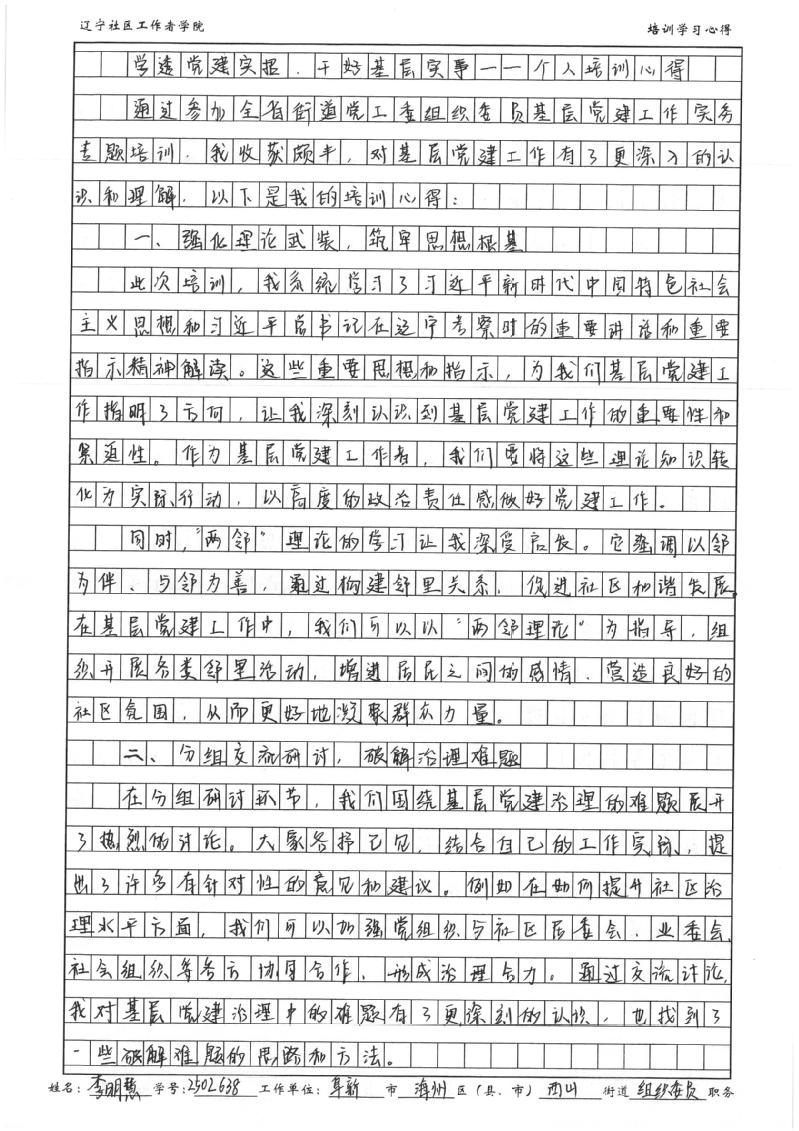 阜新市海州区西山街道党工委组织委员李明慧学习心得