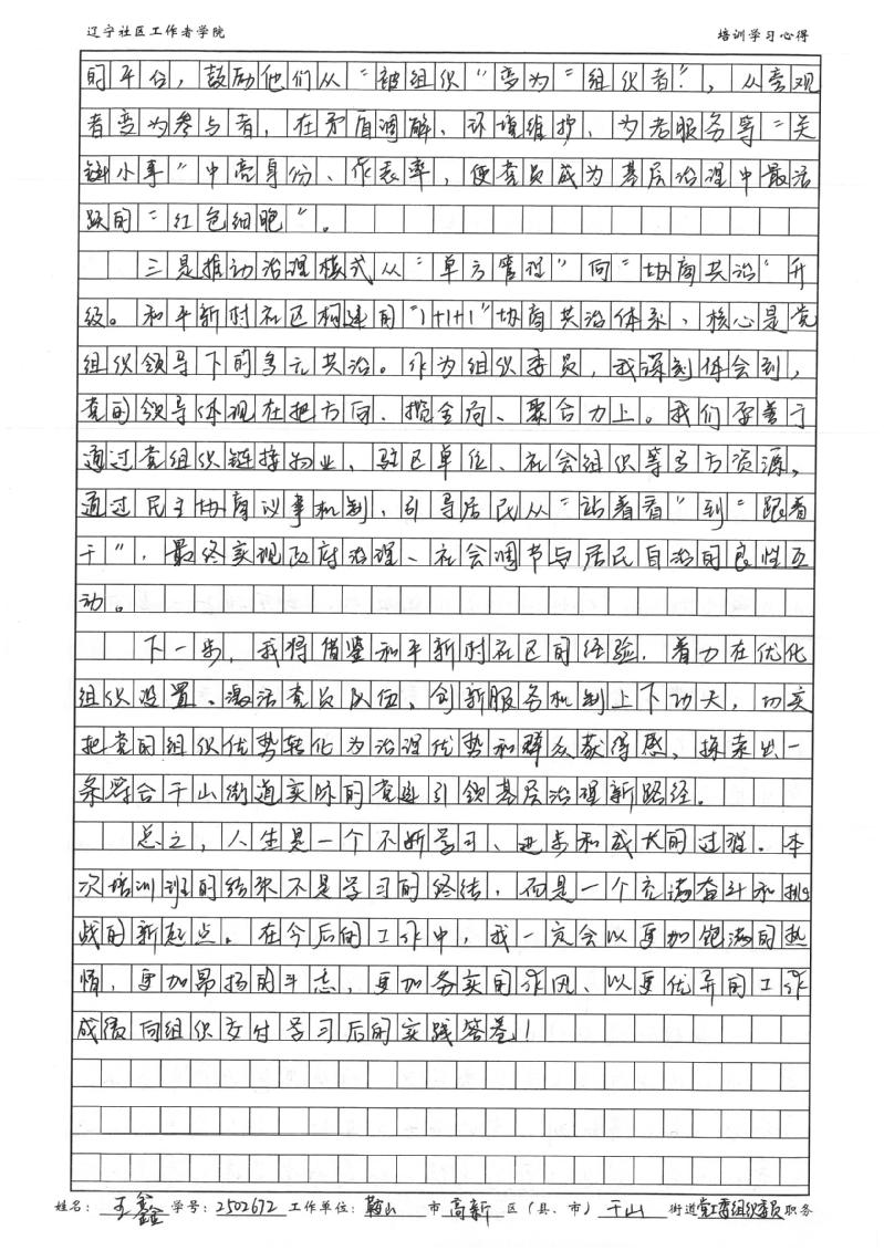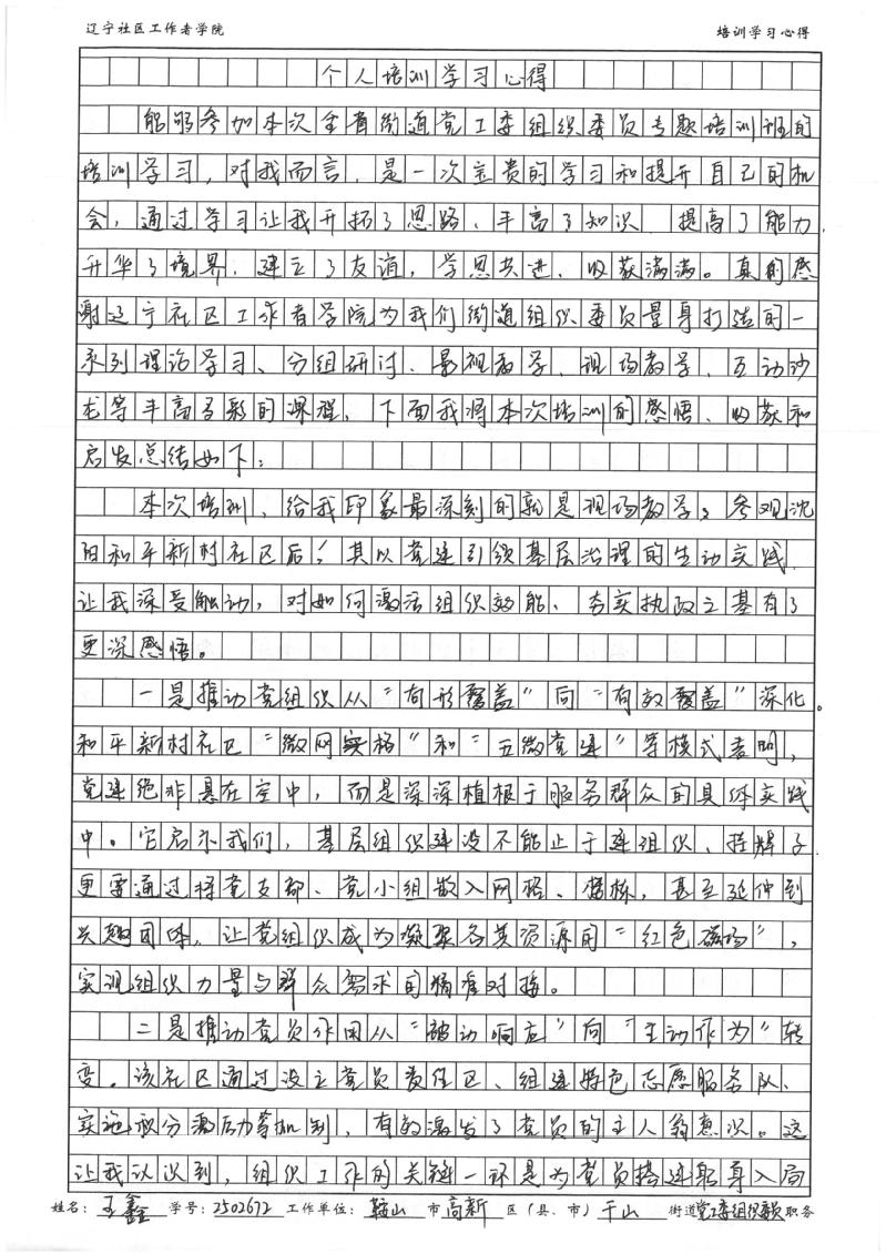 鞍山高新区千山街道党工委组织委员王鑫学习心得