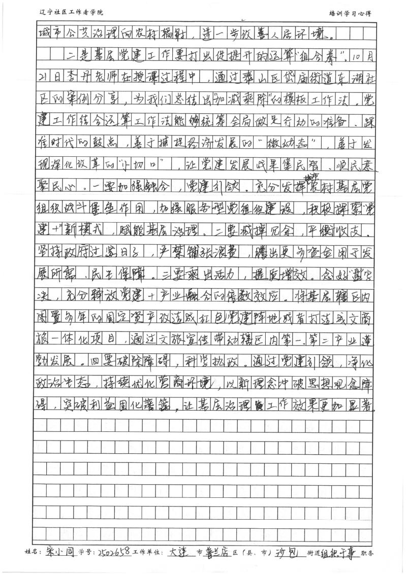 大连市普兰店区沙包街道党建工作办公室组织干事宋小同学习心得