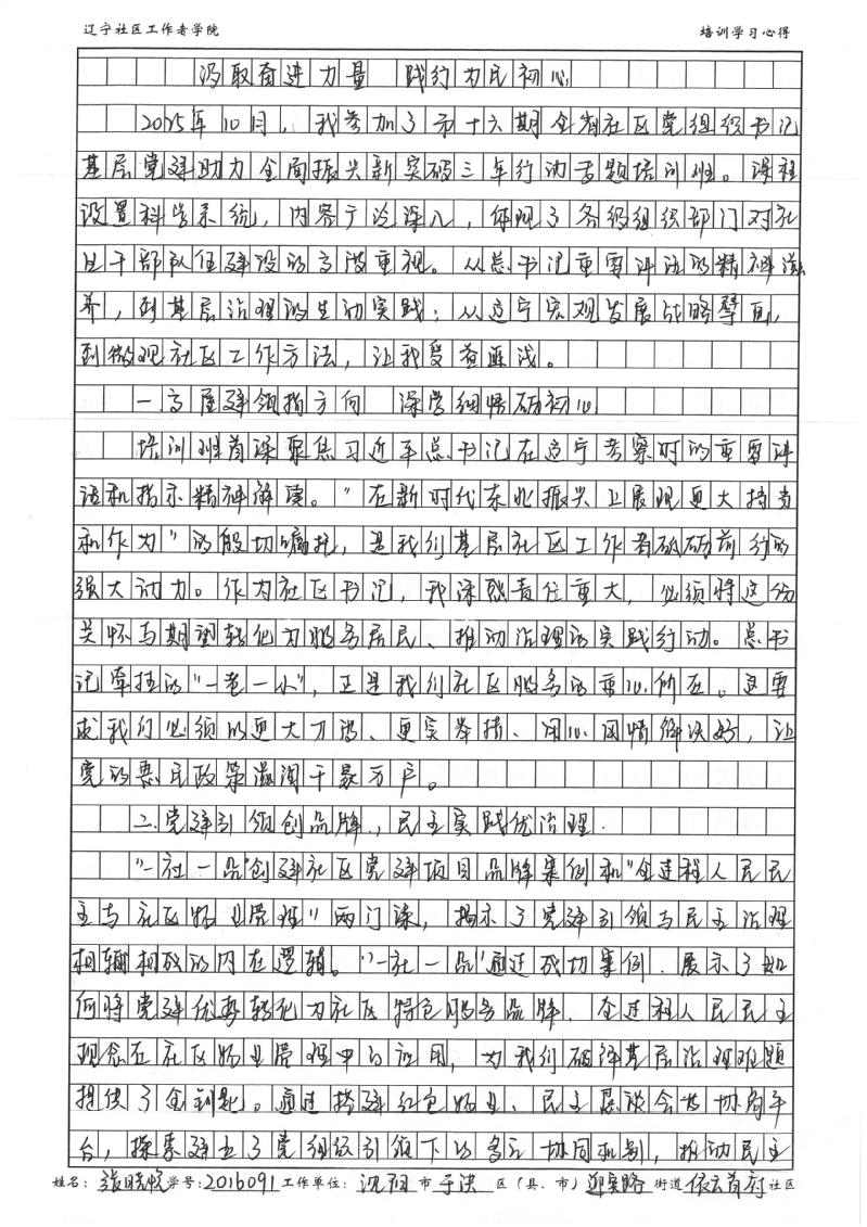 沈阳市于洪区迎宾路街道依云首府社区党委书记、居委会主任张晓悦学习心得