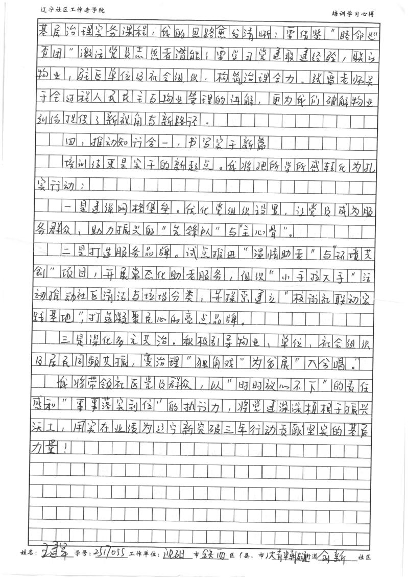 沈阳市铁西区大青中朝友谊街道创新社区党支部书王建军学习心得