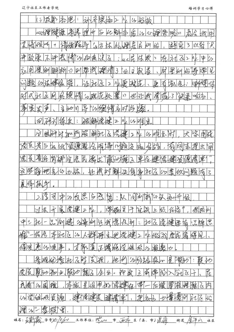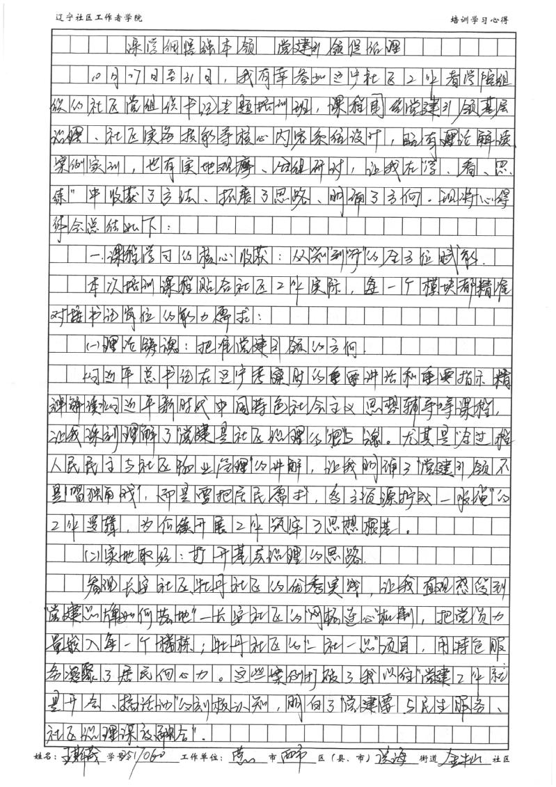 营口市西市区滨海街道金牛山社区党委书记、居委会主任王斯葳学习心得