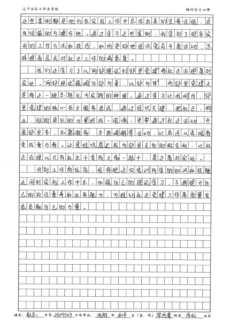 沈阳市和平区浑河湾街道河北社区党委副书记张志学习心得