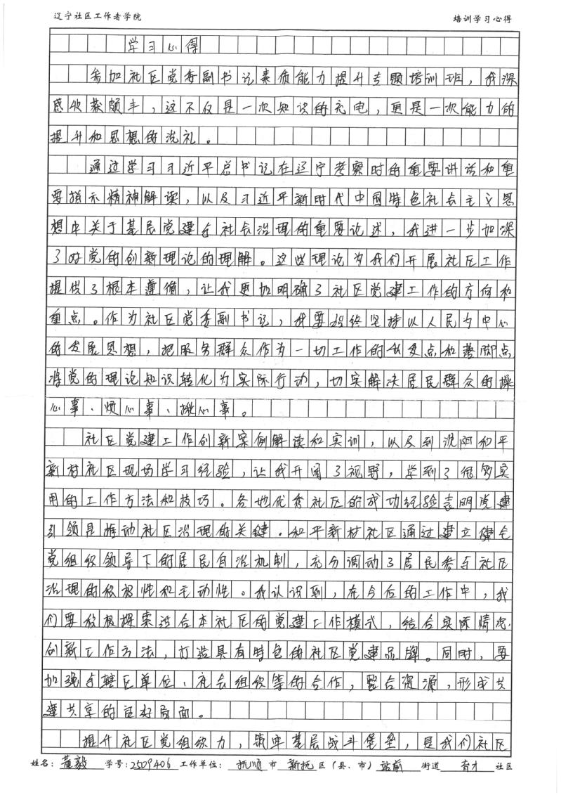 抚顺市新抚区站前街道育才社区党委副书记董毅学习心得