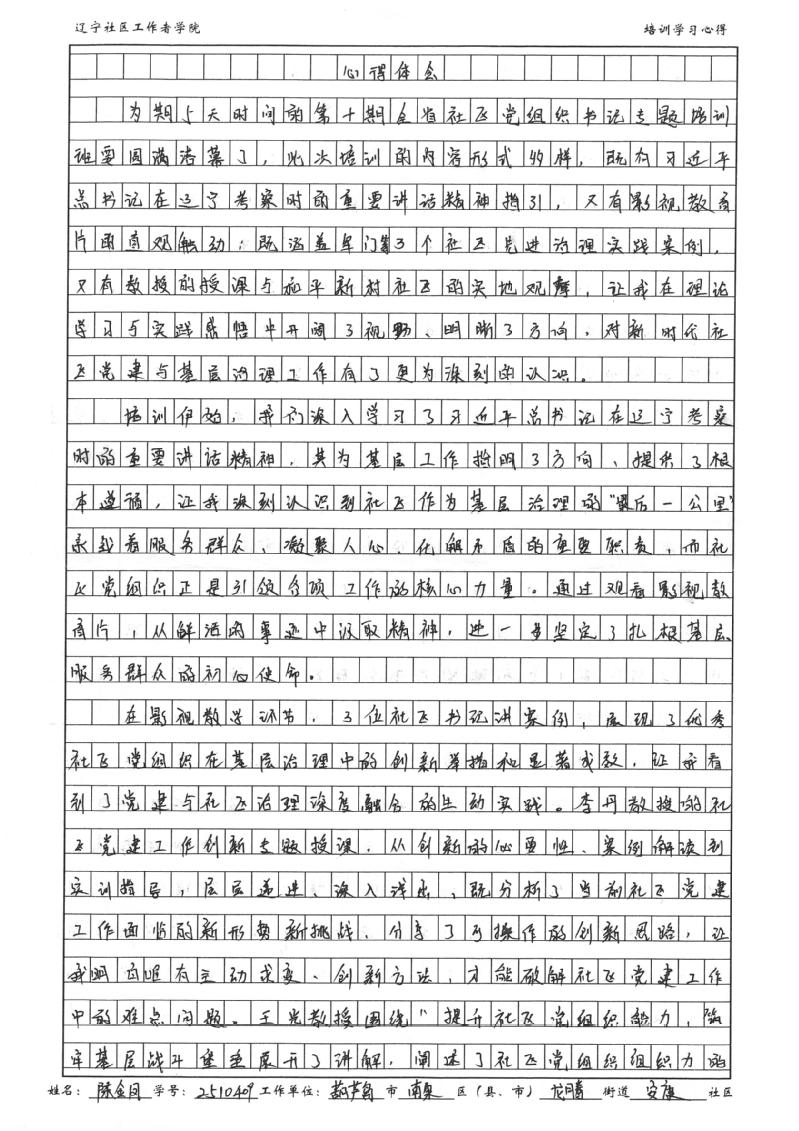葫芦岛市南票区龙腾街道安康社区党委副书记陈金凤学习心得