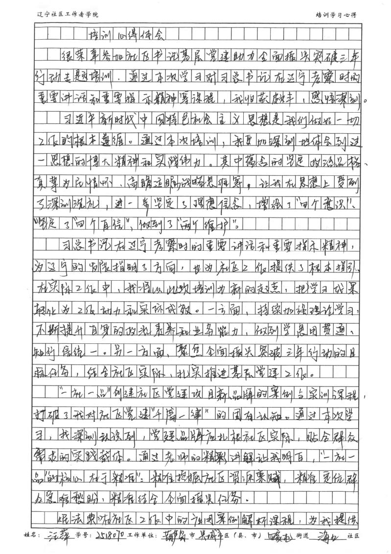 葫芦岛市兴城市四家屯街道海口社区党总支书记、居委会主任汪萍学习心得
