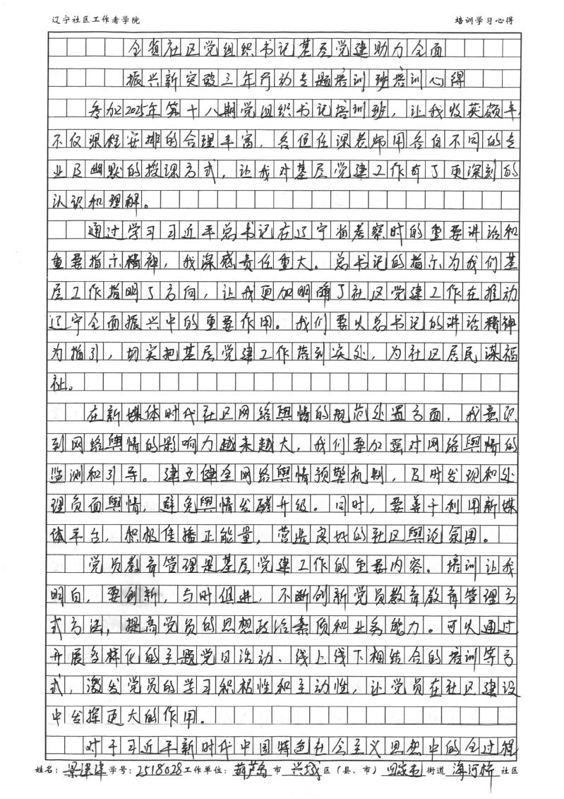 葫芦岛市兴城市四家屯街道海河桥社区党委书记、居委会主任景津津学习心得