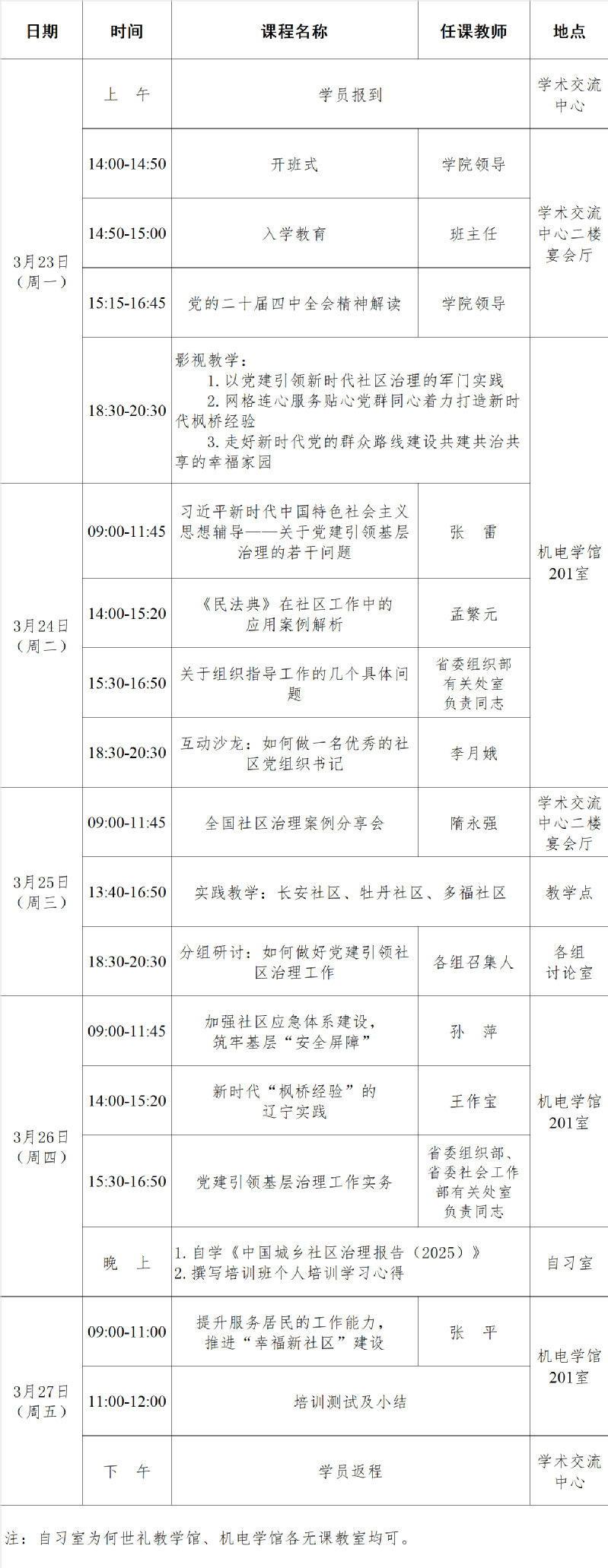 2026年第一期社区党组织书记党建引领基层治理能力提升专题培训班(总第175期)课程安排