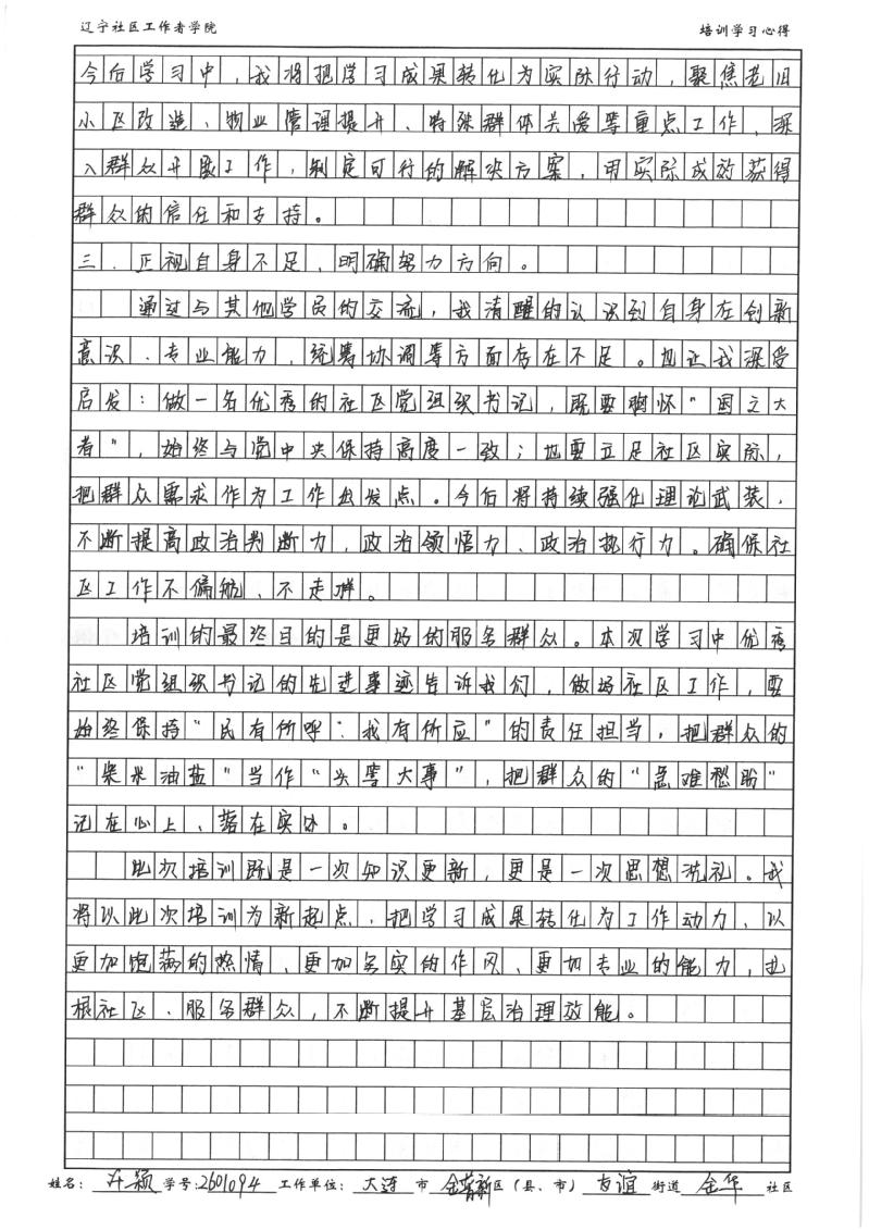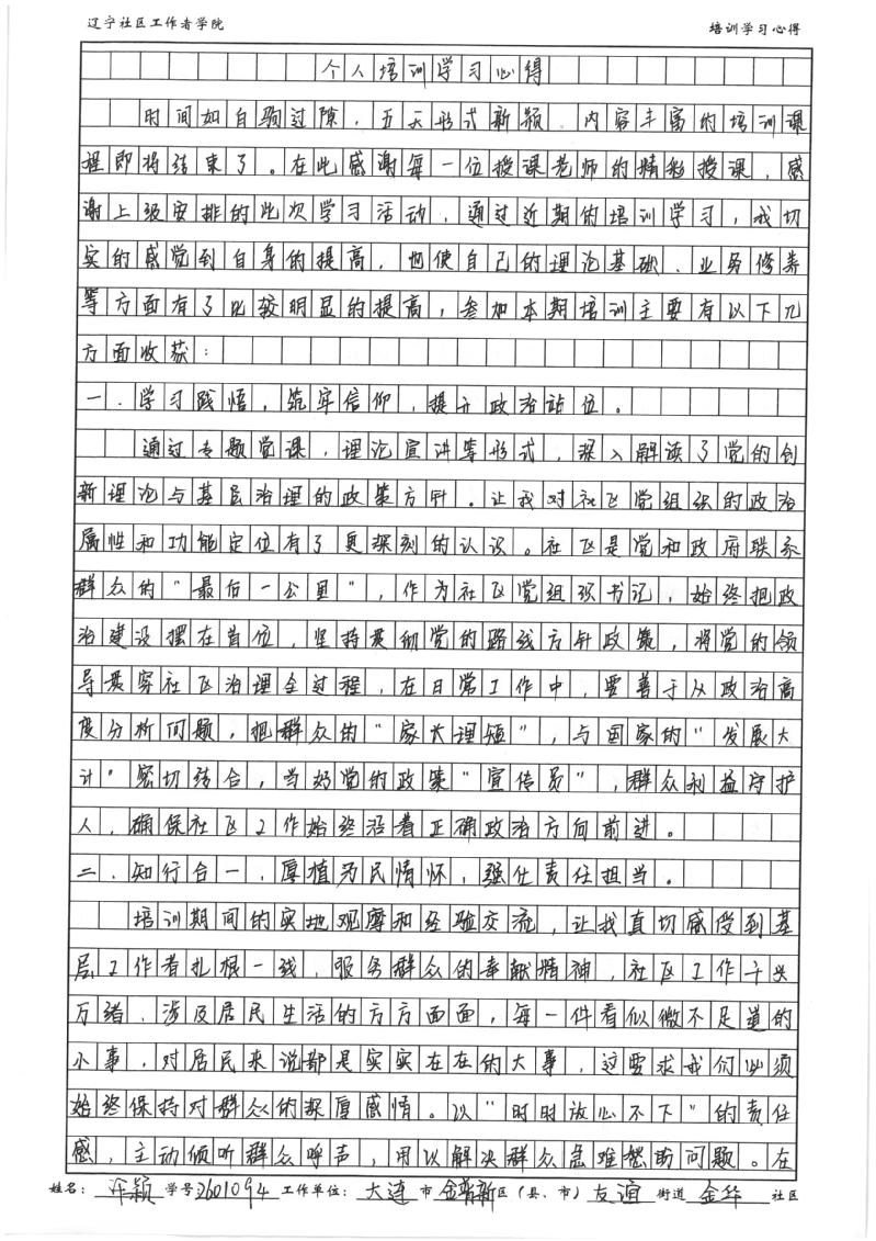 大连市金普新区友谊街道金华社区党委书记、居委会主任许颖学习心得