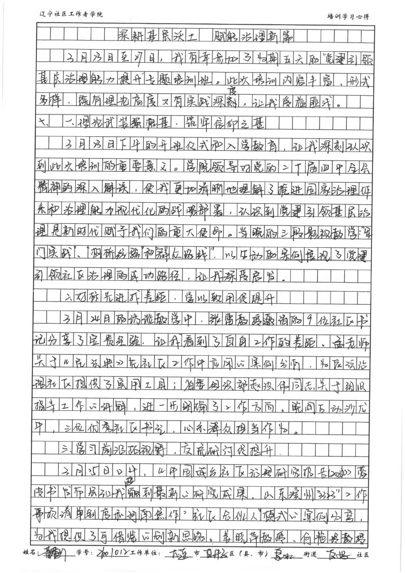 大连市甘井子区泉水街道友好社区党委书记、居委会主任董秀竹学习心得