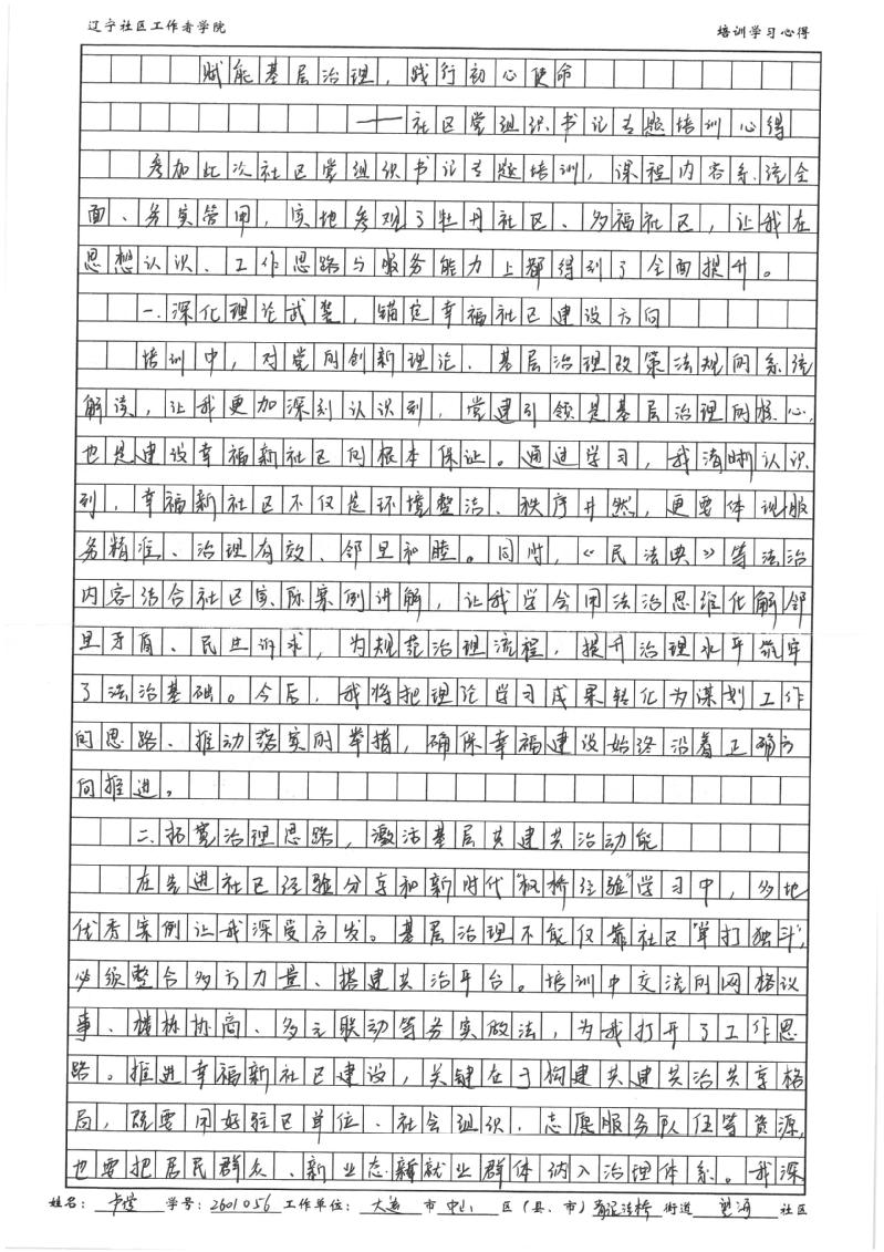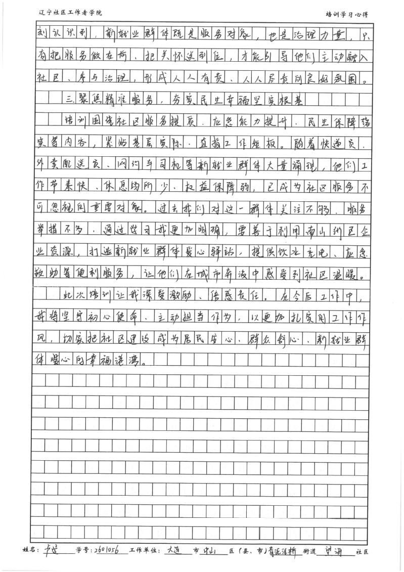 大连市中山区青泥洼桥街道望海社区党委书记、 居委会主任卢曼学习心得