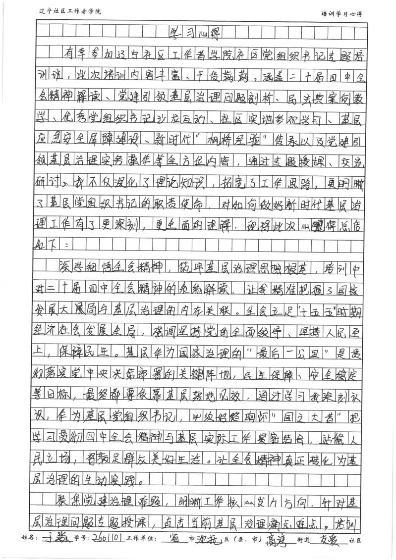 省沈抚示范区高湾经济区友爱社区党总支书记、居委会主任于淼学习心得