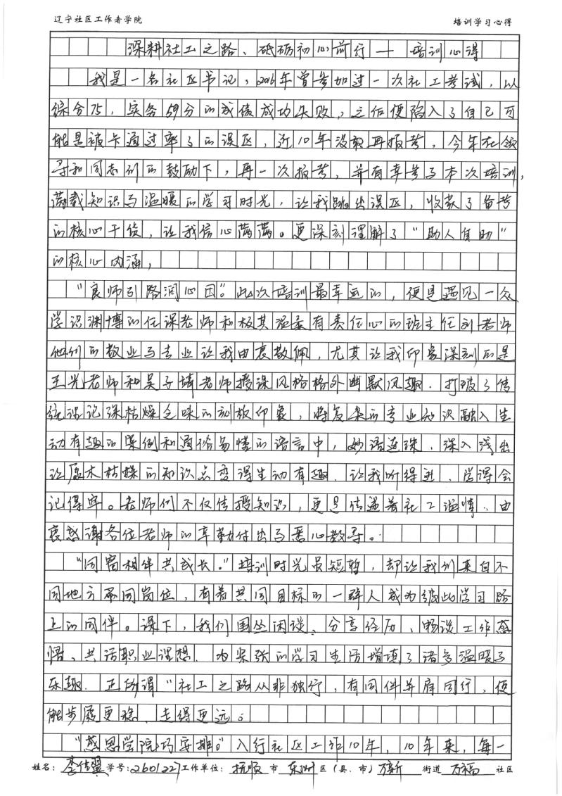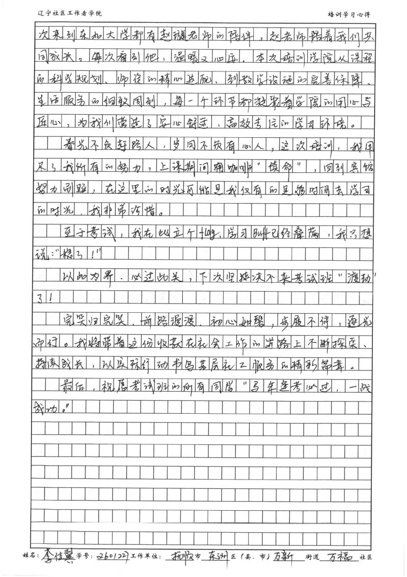 抚顺市东洲区万新街道万福社区党委书记、居委会主任李佳翼学习心得