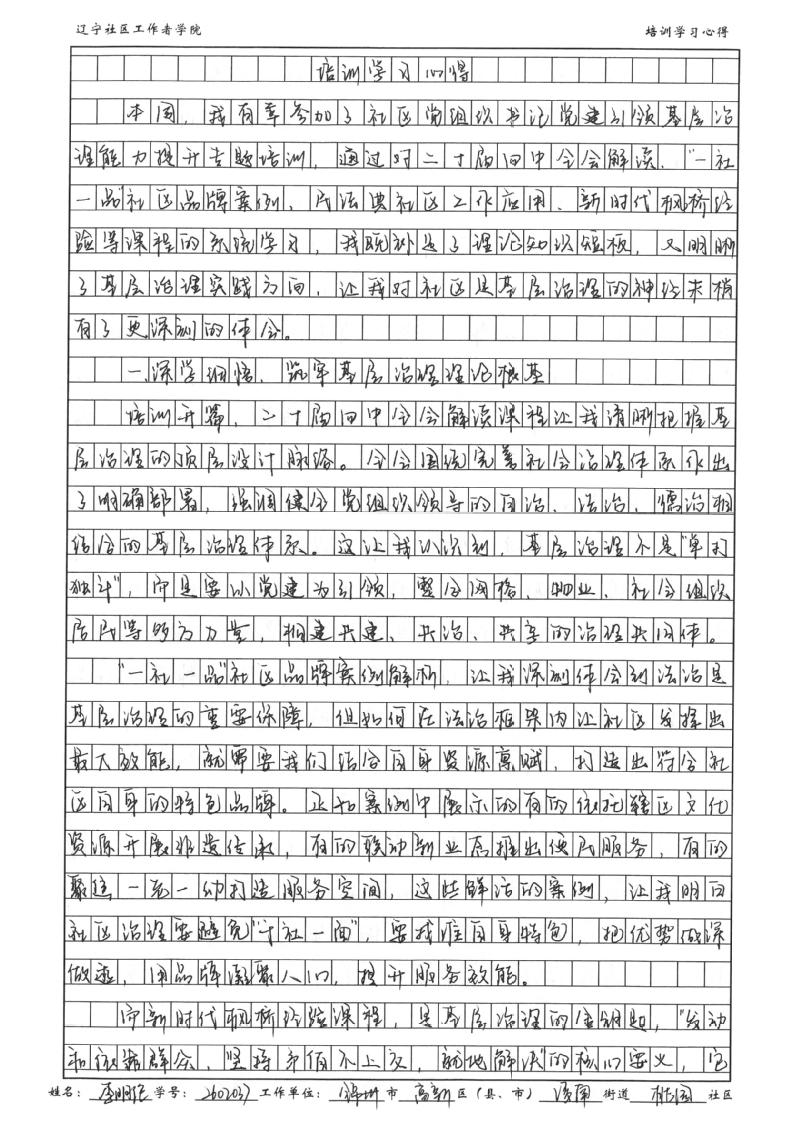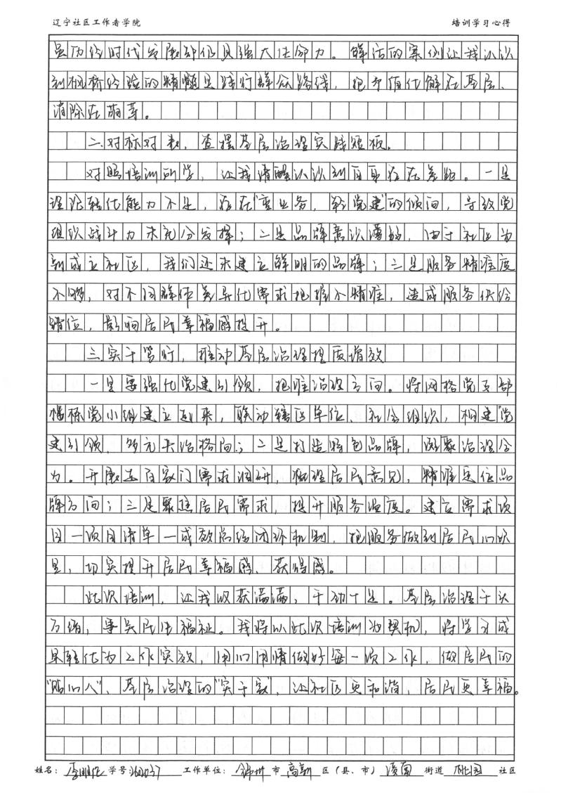 锦州市高新区凌南街道桃园社区党总支书记、居委会主任李明伦学习心得