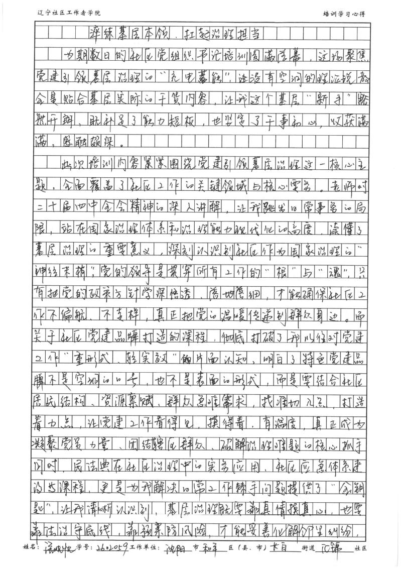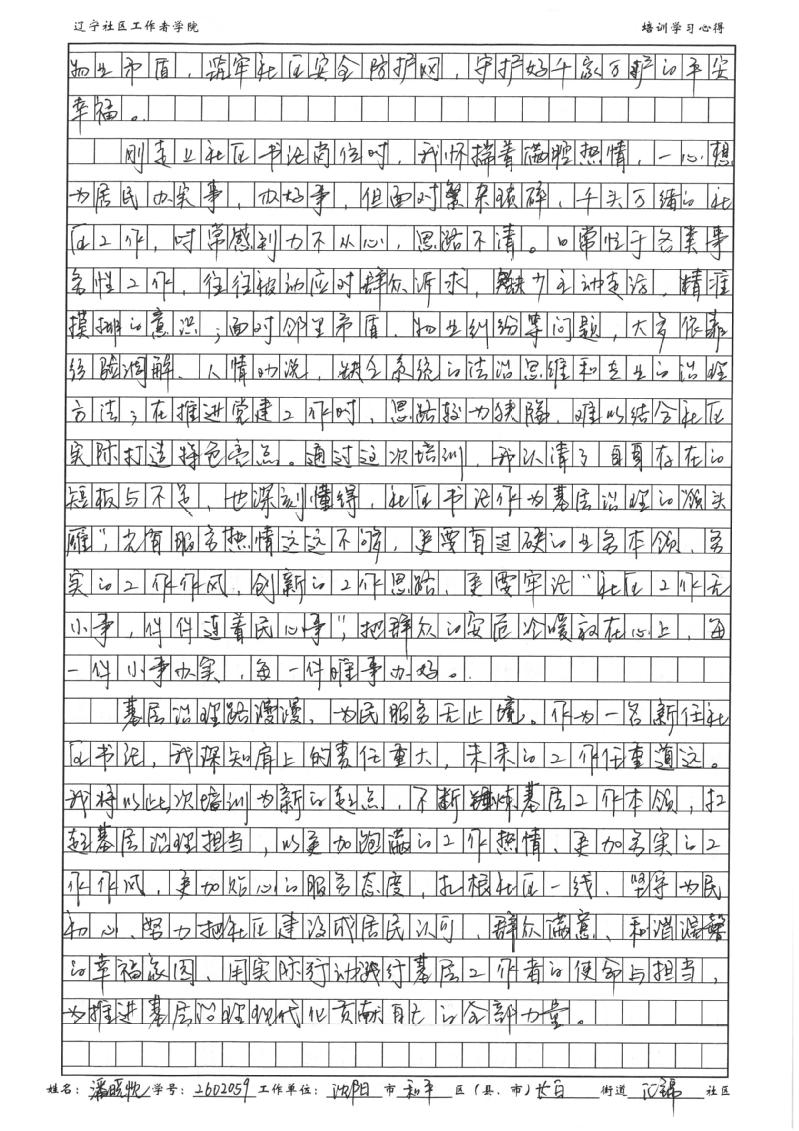 沈阳市市和平区区长白街道汇锦社区社区党总支书记、居委会主任潘晓忱学习心得