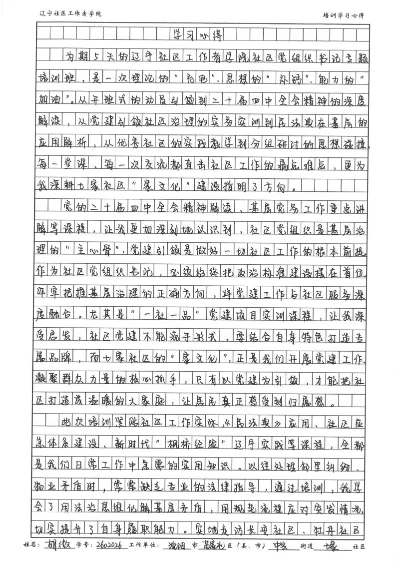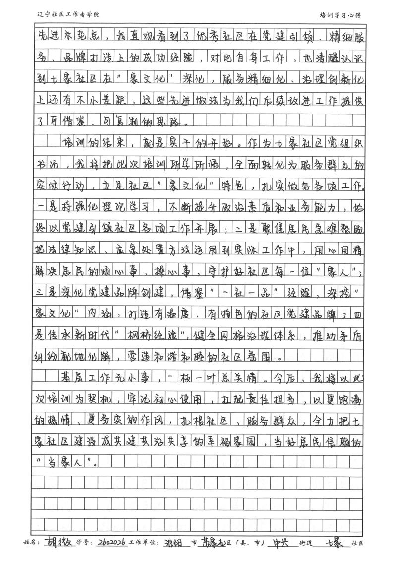 沈阳市苏家屯区中兴街道七家社区党委书记、居委会主任胡微学习心得